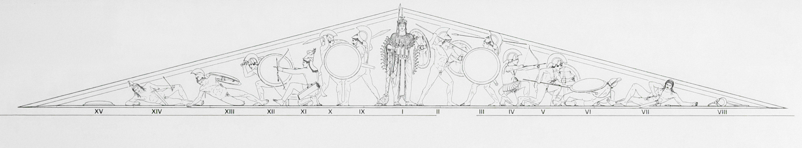 Der Künstler, der den Westgiebel des Aphaiatempels von Ägina konzipierte, stand vor einer doppelten Herausforderung: Zum einen musste er das naturgemäß unübersichtliche, ja wirre Durcheinander eines heftigen Kampfgetümmels für den Betrachter klar lesbar machen. Zum anderen war dabei der speziellen Raumvorgabe eines Giebelfeldes mit seinem dreieckigen Aufbau Rechnung zu tragen. Beide Probleme löste der Bildhauer mit Bravour.