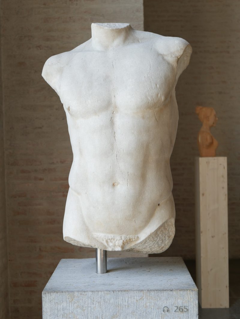 Während sich bei der archaischen Statue das Gewicht gleichmäßig auf beide Beine verteilte, wird der jetzt stärker bewegte Rumpf in erster Linie vom aufragen-den „Standbein“ getragen. Das angewinkelte „Spielbein“ hingegen ist zur Seite oder leicht nach hinten gesetzt und stabilisiert nun lediglich das labile Gleichgewicht der Figur. Zum Ausgleich macht der Oberkörper eine Gegenbewegung. Diese neue Stilformel bezeichnen die Archäologen als „Kontrapost“.