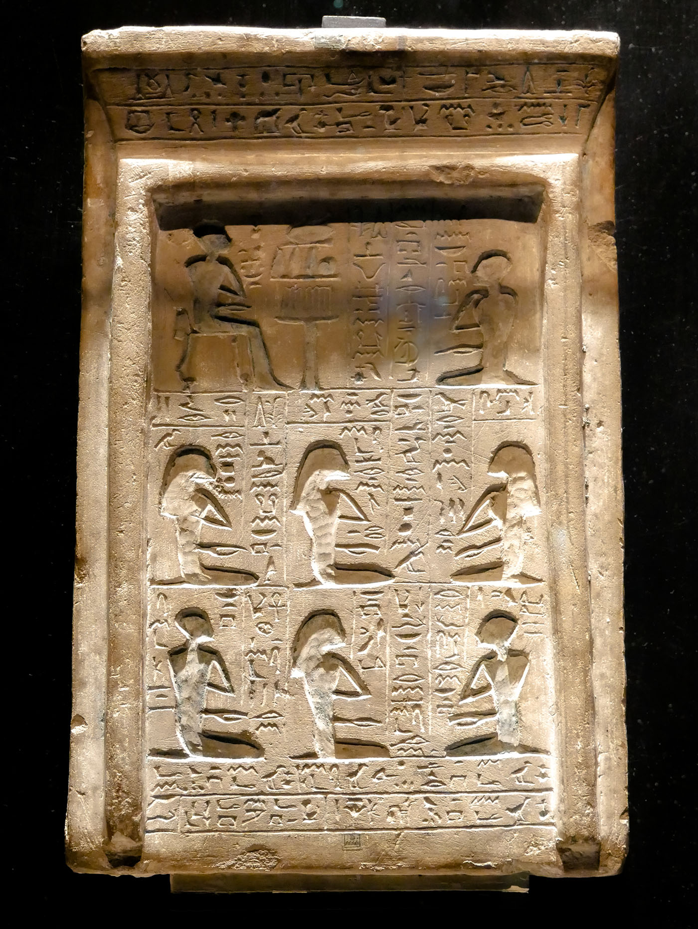 Diese meist hochrechteckigen Grabsteine werden in der 2. Dynastie abgelöst von querrechteckigen Steinplatten, sein erhabenen Relief erstmals die „Speisetischszene“ als zentrales Motiv zeigen, die die Versorgung der Verstorbenen mit Nahrungsmitteln im Jenseits garantieren soll.