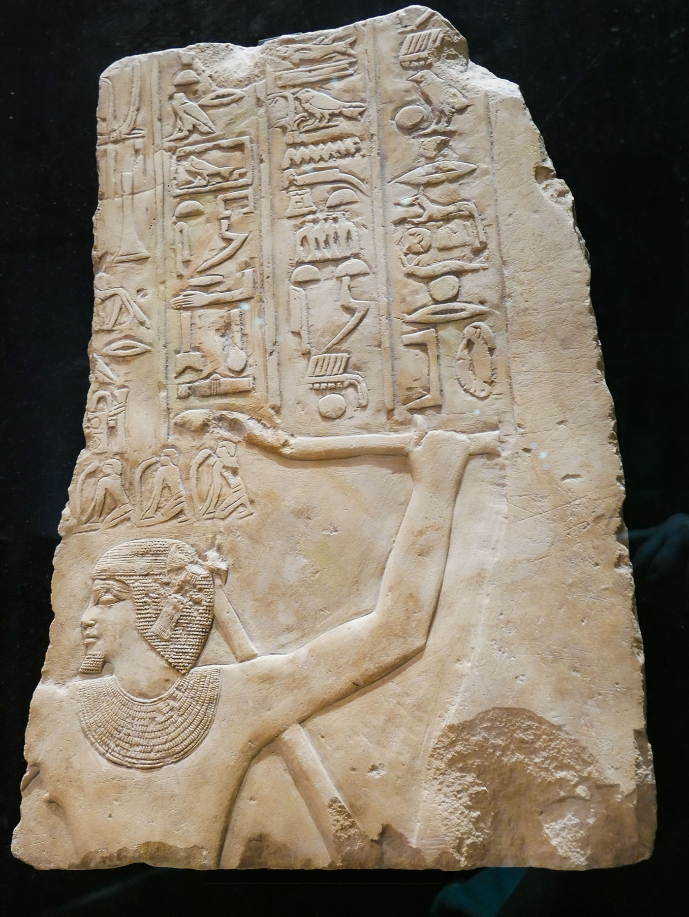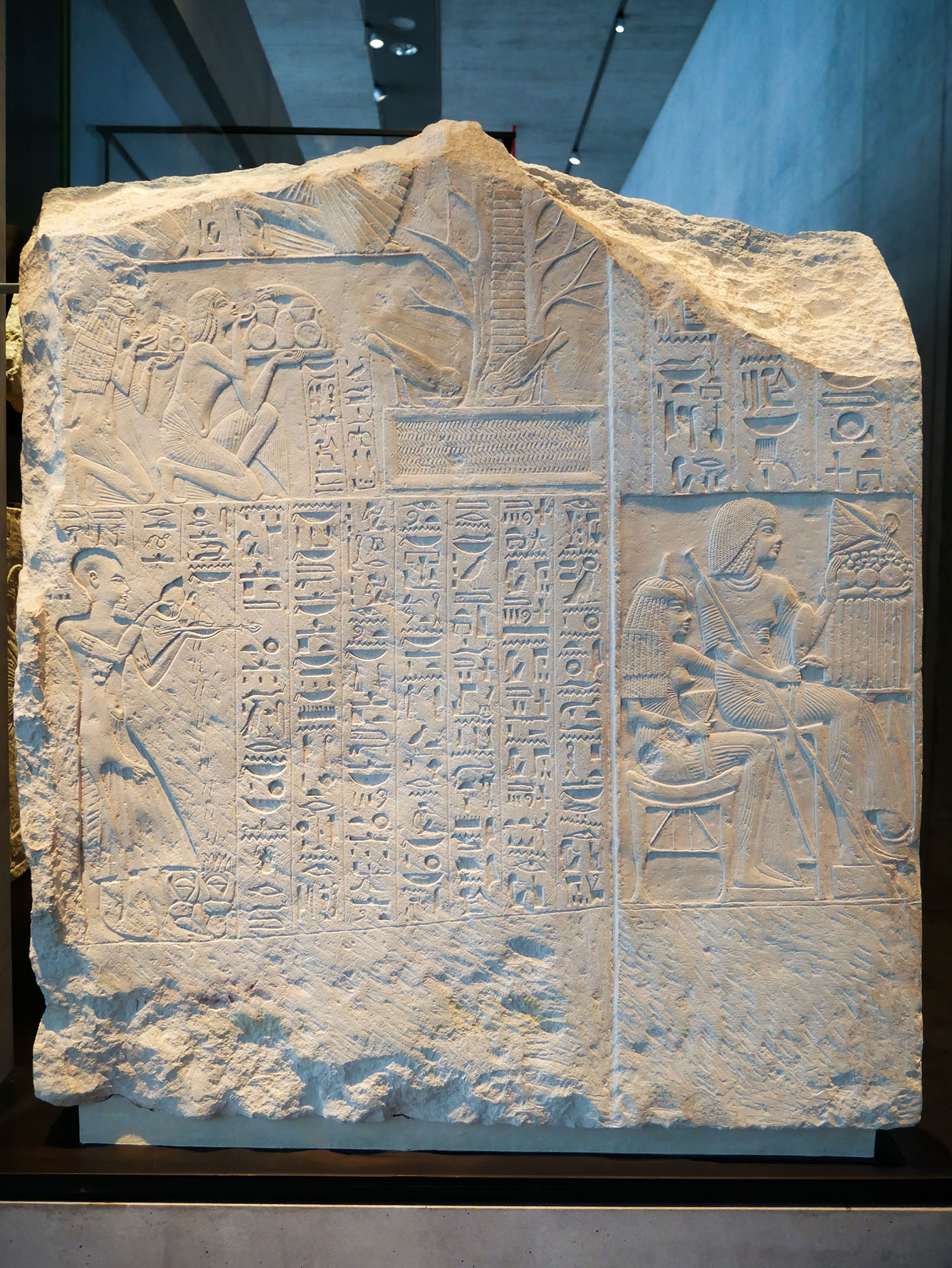 Die Grabstelen dieser Epoche zeigen oft den Verstorbenen in Begleitung seiner Ehefrau betend und opfernd vor dem Jenseitsherrscher Osiris im oberen Bildfeld.