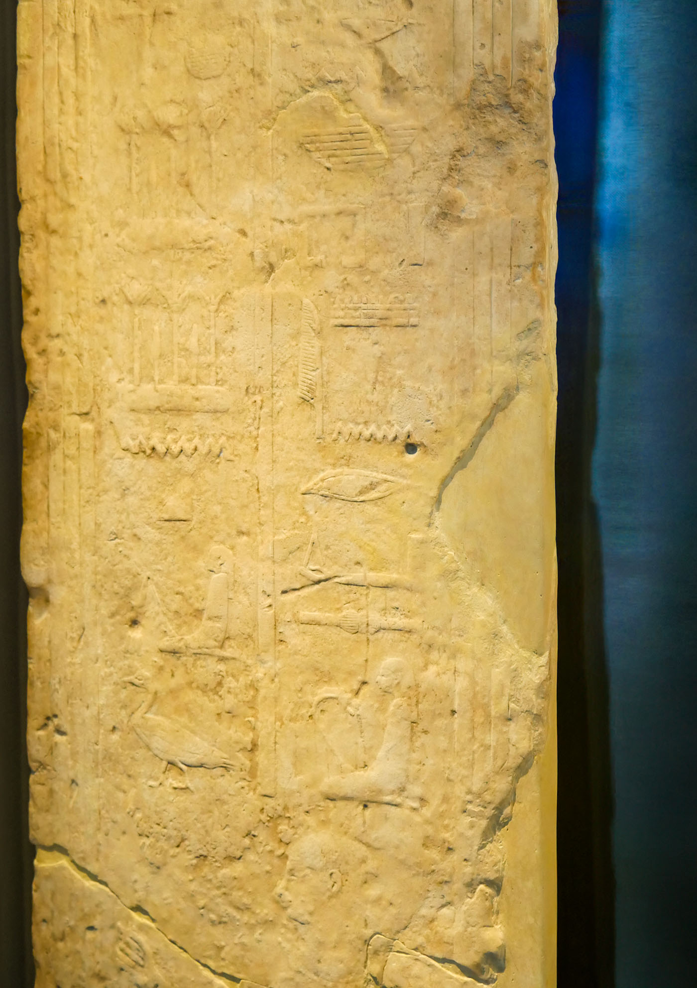 Charakteristisch für das Flachbild des Mittleren Reiches sind die klaren Formen, die die Aufreihung der Familienmitglieder wie eine Fortsetzung der Hieroglyphen in der biographischen Inschrift erscheinen lassen.