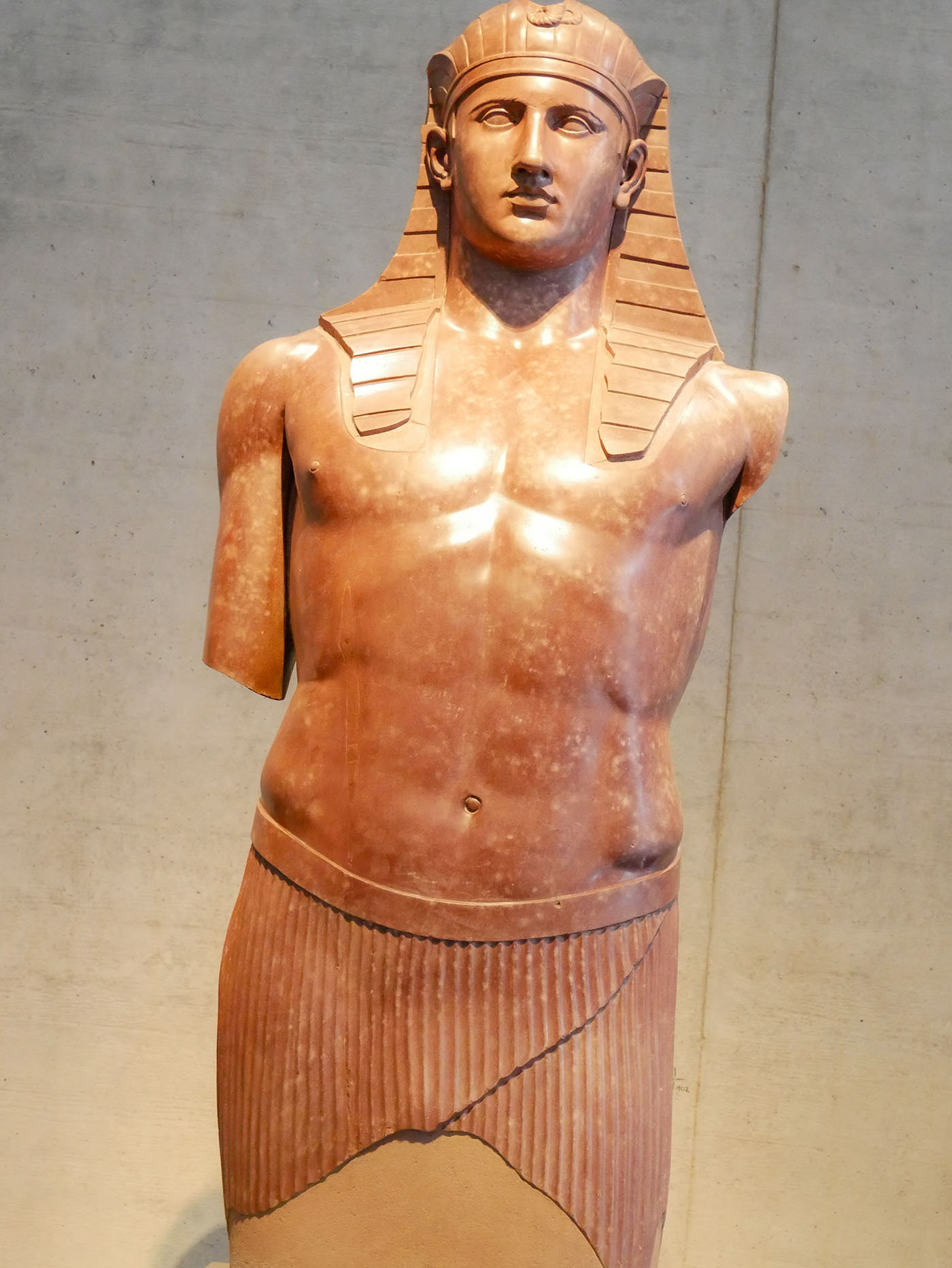 Am Ende der Dritten Zwischenzeit, deren Kunst stilistisch an das späte Neue Reich anknüpft und ausschließlich idealisierende Bildnisse schuf, erhält die Kunst in der 25. Dynastie aufregende neue Impulse durch die Fremdherrschaft der Kuschiten aus dem Reich von Napata, weit im Süden am 4. Katarakt gelegen. Ein neues, afrikanisch inspiriertes Menschenbild zeigt kräftige Proportionen wie im Schlachtungsrelief und differenziert die Gesichter bis hin zum Altersporträt.