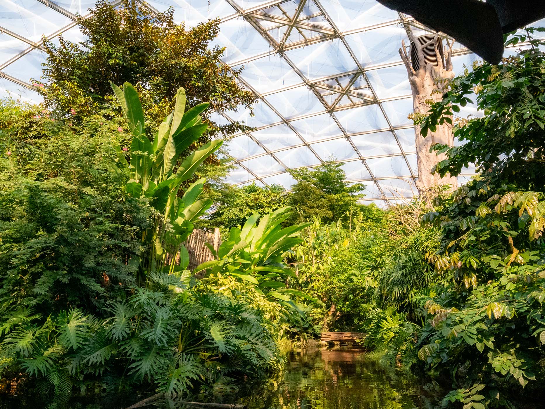 Die riesige Tropenhalle wurde benannt nach dem Urkontinent auf der Südhalbkugel. Das war für mich erst mal ein WOW-Erlebnis. Betritt man die gigantische Glaskuppel und die Türen schliessen sich, strömt mir warme, feuchte Luft entgegen – Willkommen im Dschungel – die hektischen Innenstadt ist weit von dir. Hier in Gondwanaland vereinen sich die tropischen Regenwälder Asiens, Südamerikas und Afrikas.