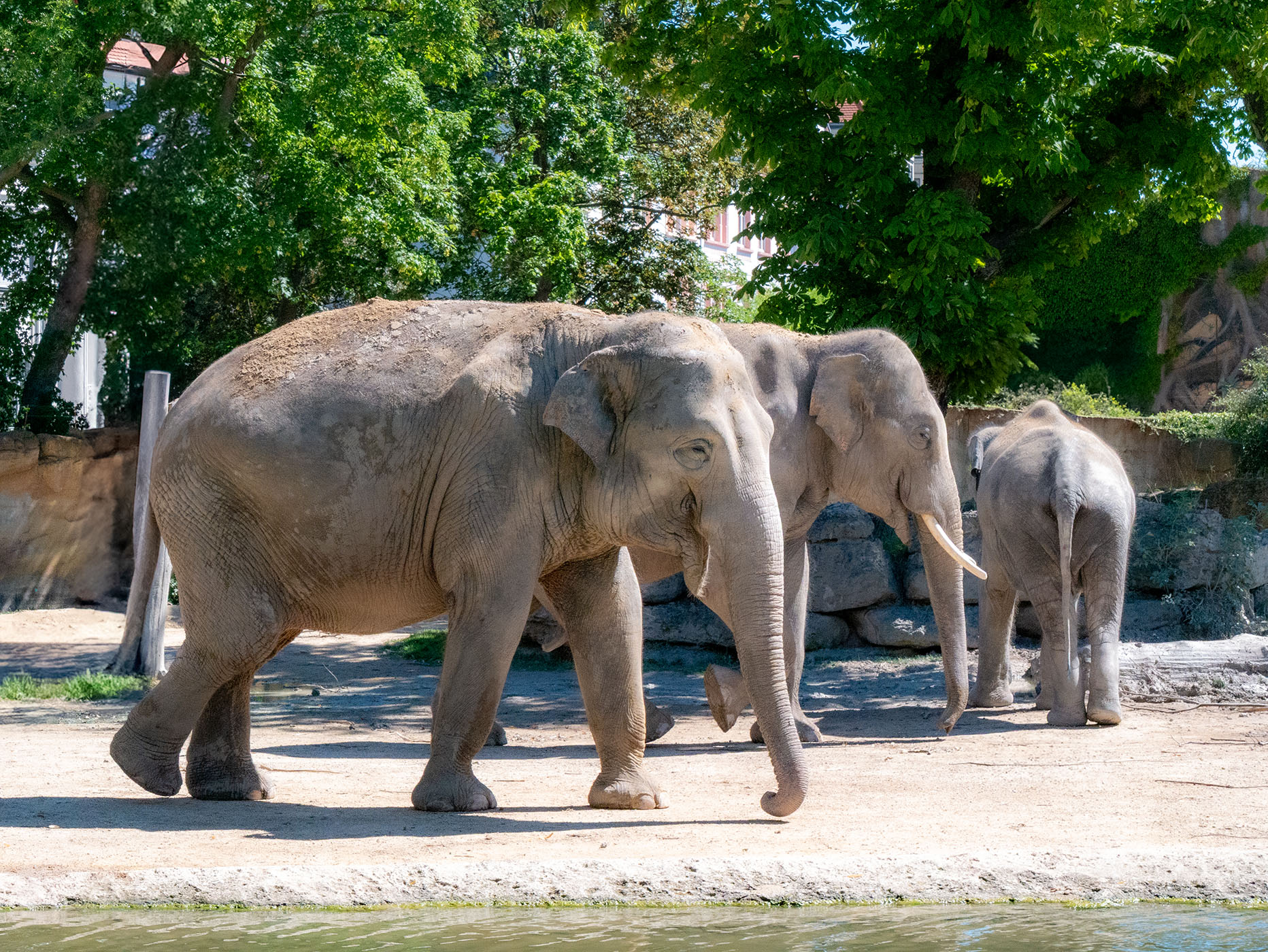In der Tempelanlage ´Ganesha Mandir´ mit einem verglasten Badebecken und weitläufigen Außengehegen, können die asiatischen Elefanten beobachtet werden. Wer aufmerksam durch den asiatischen Teil des Zoos wandert, wird zahlreiche Skulpturen finden. Es lohnt sich, auch mal abseits der Gehege genauer hinzusehen.