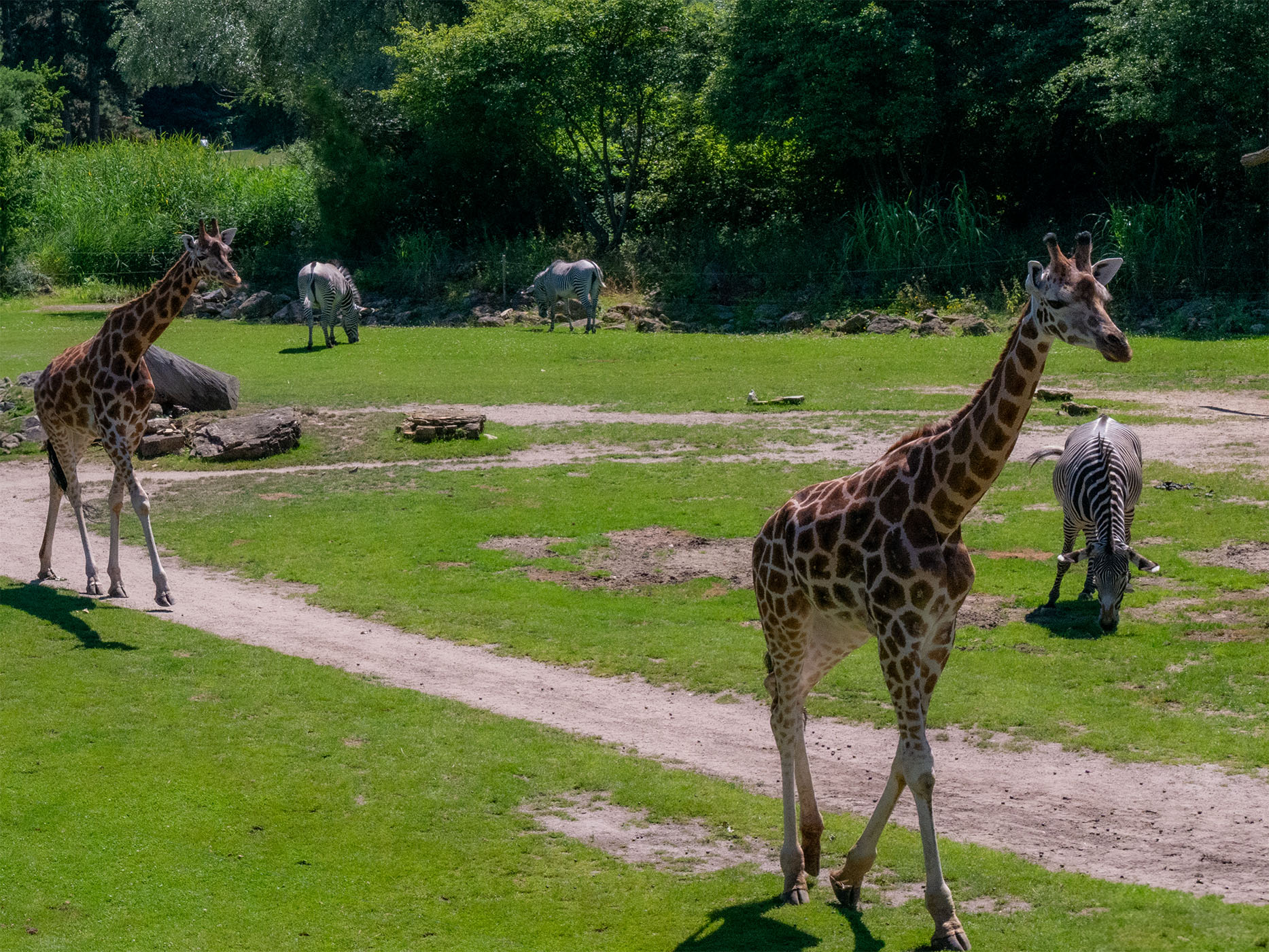 Hier gehe ich auf Safari und genieße den Blick von der Terrasse der Kiwara-Lodge. Rothschildgiraffen, Antilopen, Strauße und Grevyzebras sind von der Nähe zu beobachten, ein Fernglas brauch ich nicht. Noch mehr Afrika gibt’s in der Ende April 2015 eröffneten Kiwara-Kopje, dem Zuhause von Spitzmaul-Nashörnern, Geparden, Husarenaffen und Klippschliefer. Säbelantilopen, Östliche Weißbartgnus, Thomson-Gazellen, Zwergflamingos, Nilgänse, Südliche Hornraben, Marabus und Kronenkraniche sind ebenso zu sehen.
